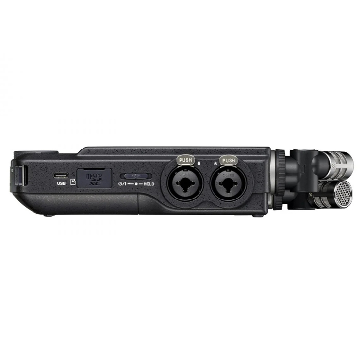 *Recording Media: microSD card (64 MB – 2 GB) microSDHC card (4–32 GB) microSDXC card (48–512 GB) *Recording File Format: WAV (BWF) *Sampling Frequency: 44.1k / 48k / 96 kHz *Bit-depth: 16-bit / 24-bit / 32-bit *MP3 /ampling Frequency: 44.1k / 48 kHz *Recording Bit-rate: 32k / 64k / 96k / 128k / 192k / 256k / 320k bps *Playback Bit-rate: 32k to 320k bps, VBR, ID3TAG Ver. 2.4 *Input channels: 6 (maximum) *Recording tracks: 8 (6 tracks + stereo mix) *Playback speed control 0.5 to 2.0 times (in 0.1 increments) * 44.1k/48kHz only *Built-in Microphone Unidirectional, Stereo (switchable between A-B and X-Y positions)